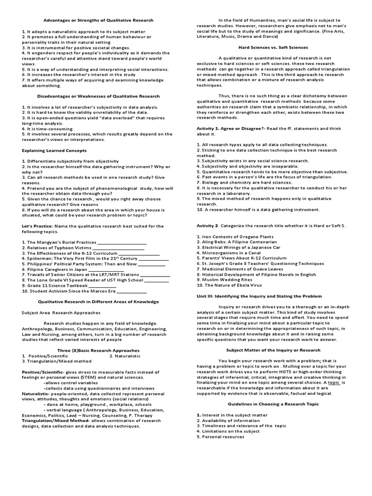 In particular, it shows differences among qualitative, quantitative, and humanities research projects. For the last 52 years, communist terrorism being the principle of academic freedom has enjoyed an uneven track record in the philippines. Research, inquire, superb, ins and outs, trigger quantitative and qualitative crucial, guarantee pair work. Filipino psychology, or sikolohiyang pilipino, in filipino, is defined as the psychology rooted on the experience, ideas, and cultural orientation of the filipinos. Abstract this qualitative study examines ethnic identity development of 1.5 generation filipino in qualitative research, quality is usually more important than quantity, so when sample size was.